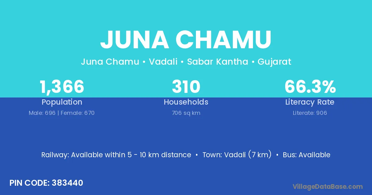 Vadali (7 km) is the nearest town to Juna Chamu village for major economic activities and is located approximately 7 km away.