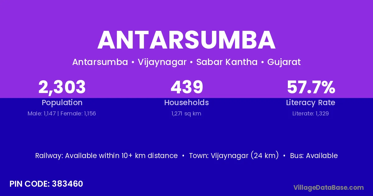 Vijaynagar (24 km) is the nearest town to Antarsumba village for major economic activities and is located approximately 24 km away.