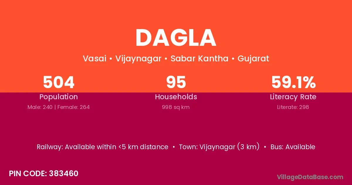 Vijaynagar (3 km) is the nearest town to Dagla village for major economic activities and is located approximately 3 km away.