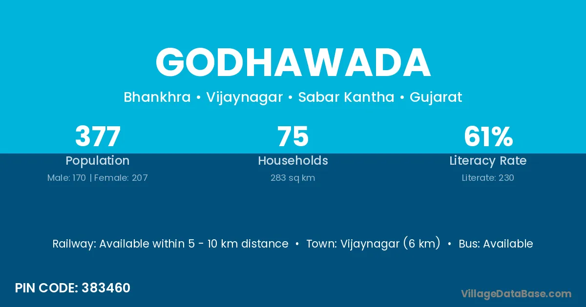 According to Census 2011 information, the village code of Godhawada village is 383460.