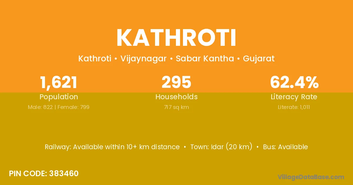 Idar (20 km) is the nearest town to Kathroti village for major economic activities and is located approximately 20 km away.