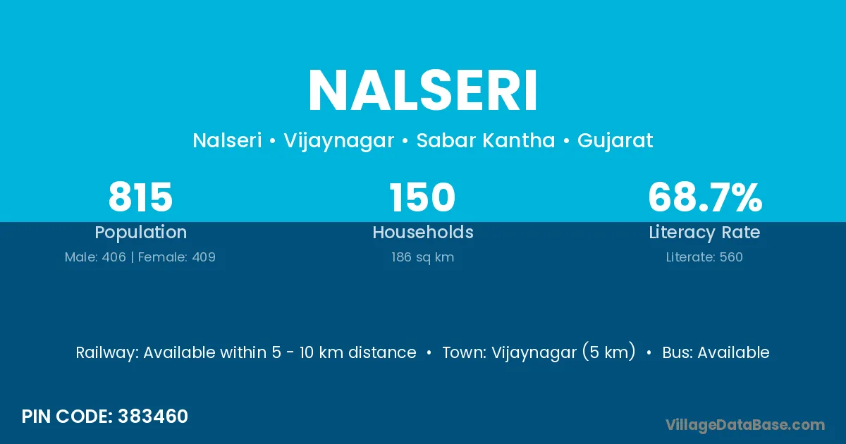 Vijaynagar (5 km) is the nearest town to Nalseri village for major economic activities and is located approximately 5 km away.