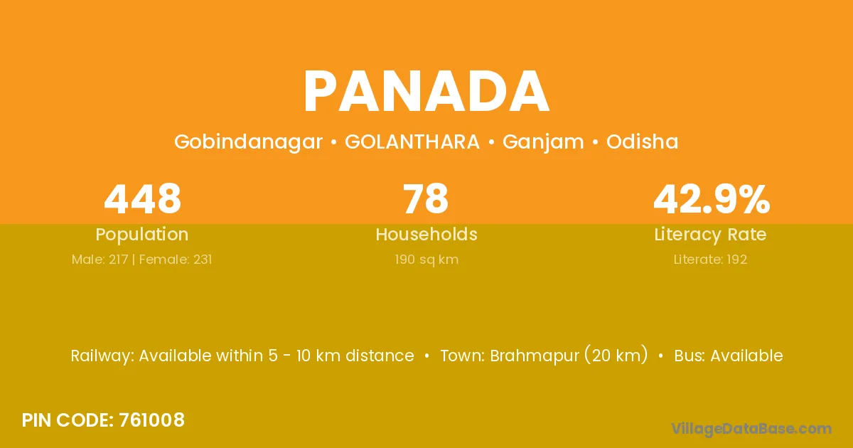 According to Census 2011 information, the village code of Panada village is 394355.