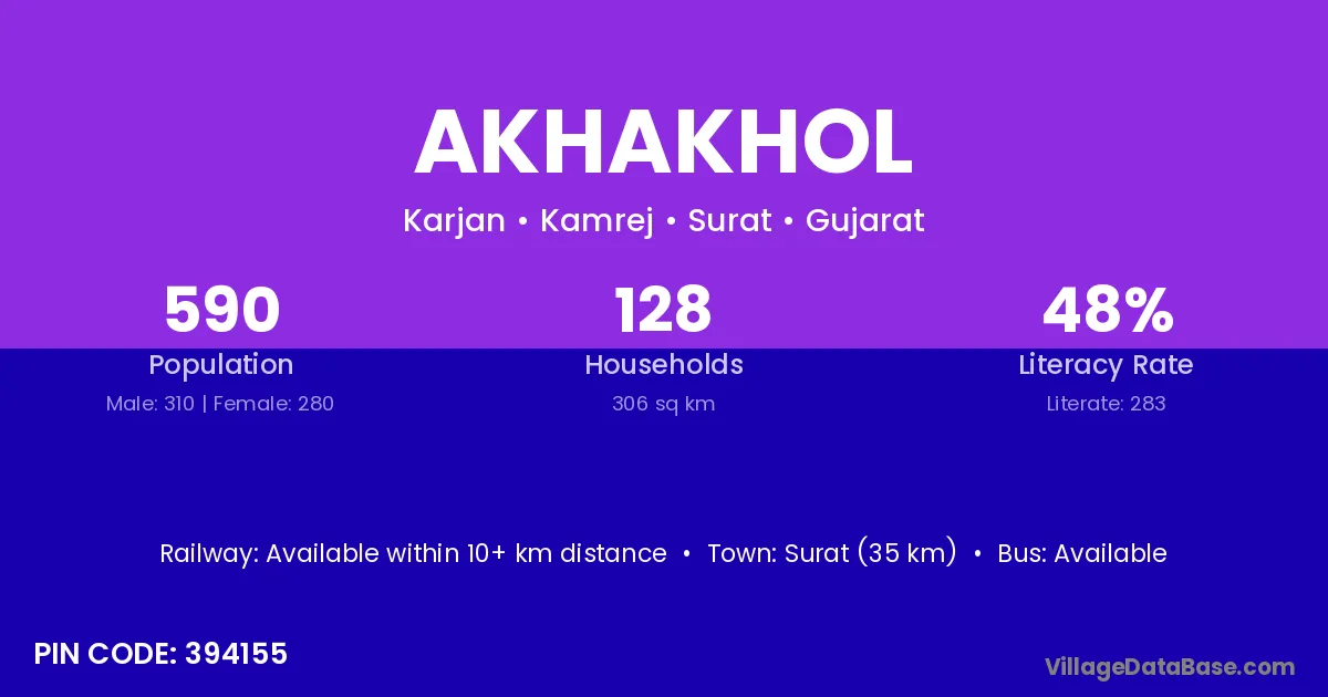 Surat (35 km) is the nearest town to Akhakhol village for major economic activities and is located approximately 35 km away.