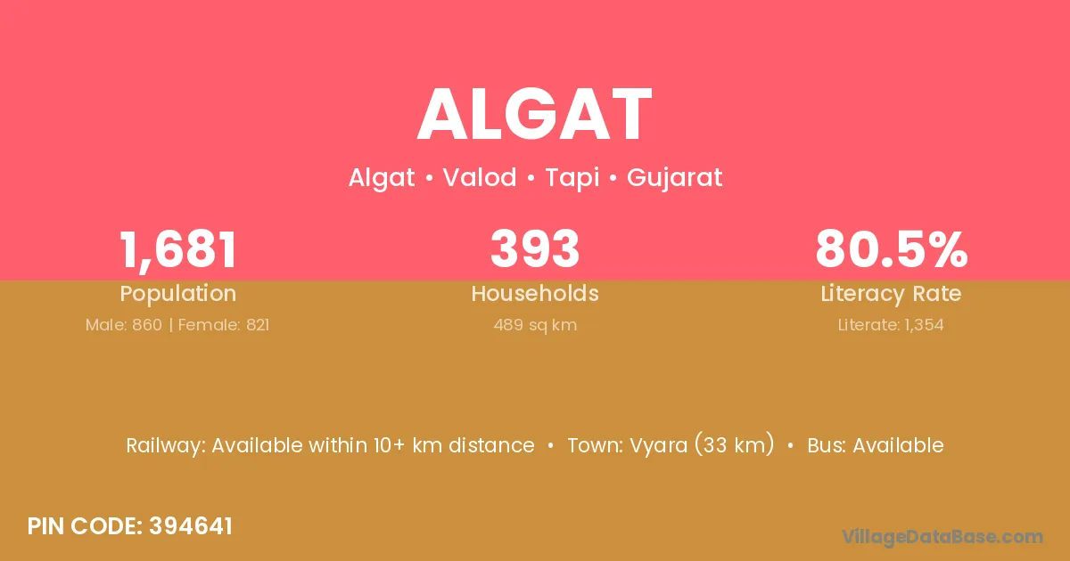 Bardoli (27 km) is the nearest town to Algat village for major economic activities and is located approximately 27 km away.