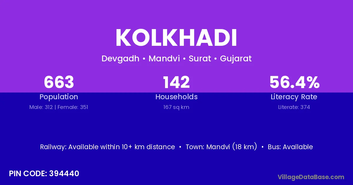 According to Census 2011 information, the village code of Kolkhadi village is 394440.