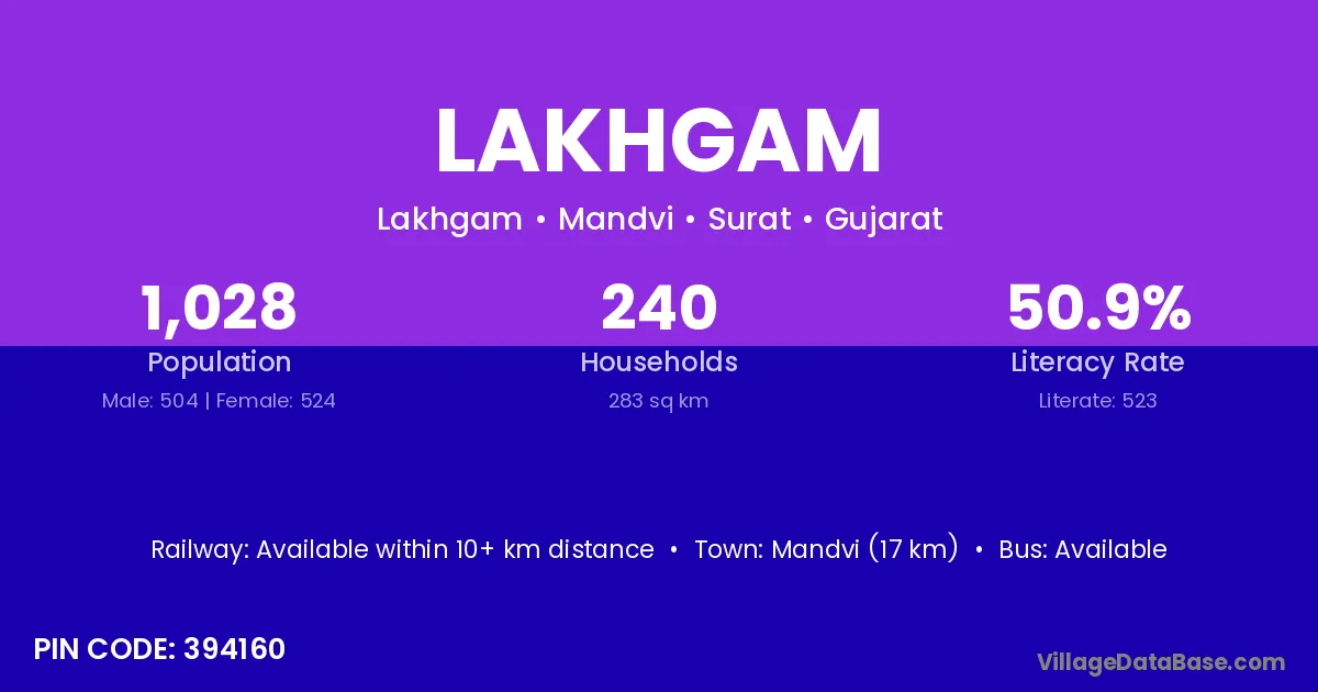 According to Census 2011 information, the village code of Lakhgam village is 394160.