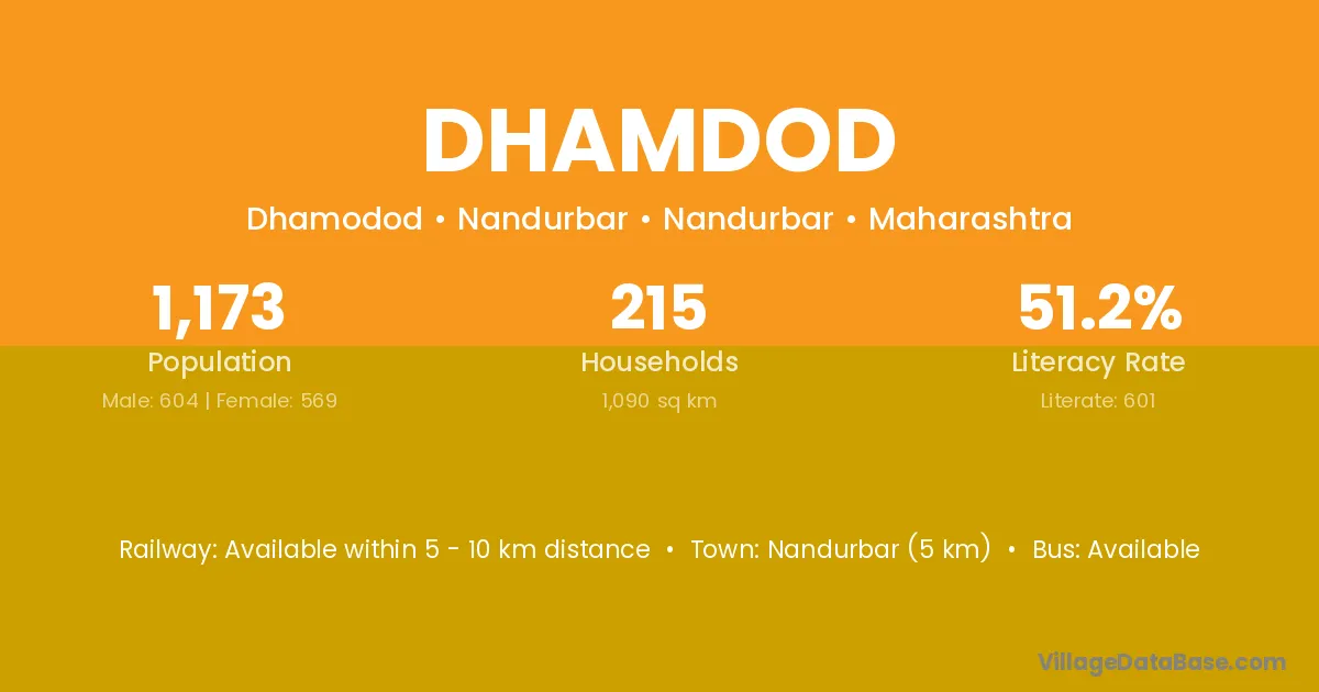 Tarsadi (10 km) is the nearest town to Dhamdod village for major economic activities and is located approximately 10 km away.
