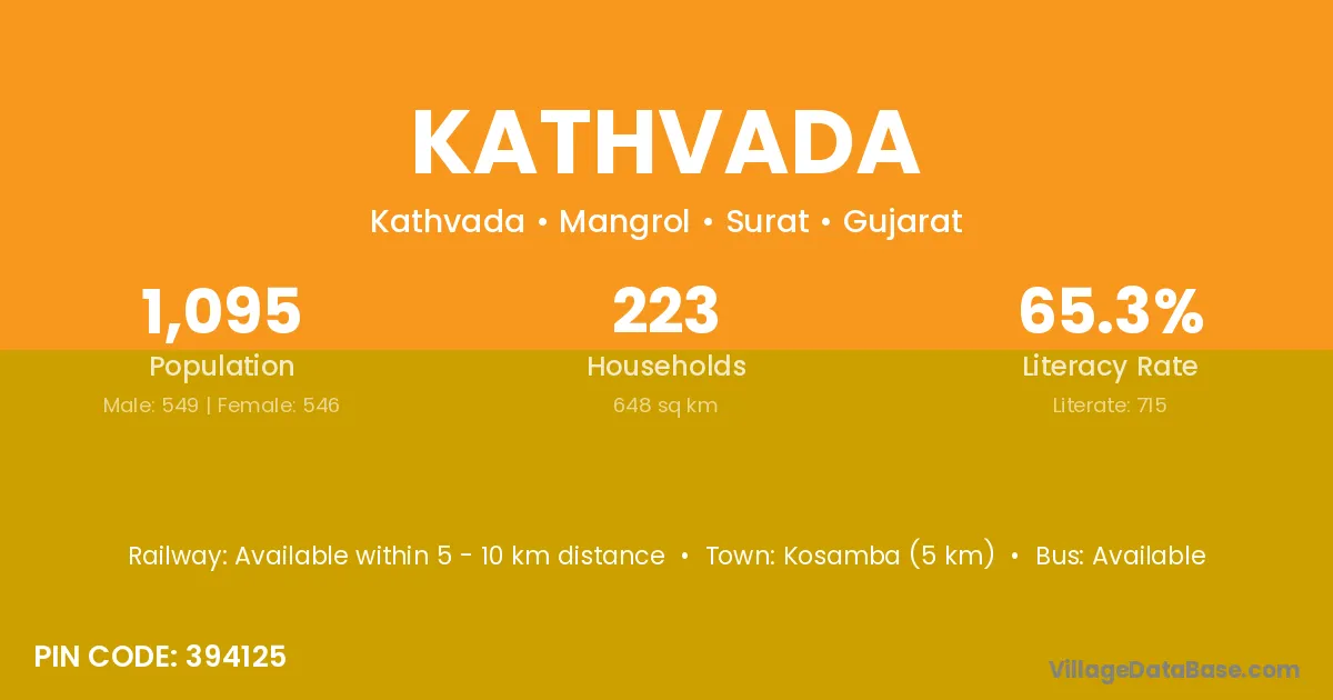 Kosamba (5 km) is the nearest town to Kathvada village for major economic activities and is located approximately 5 km away.