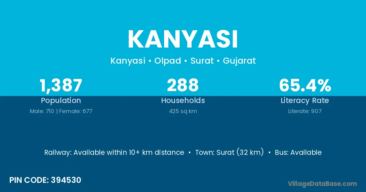 Surat (32 km) is the nearest town to Kanyasi village for major economic activities and is located approximately 32 km away.