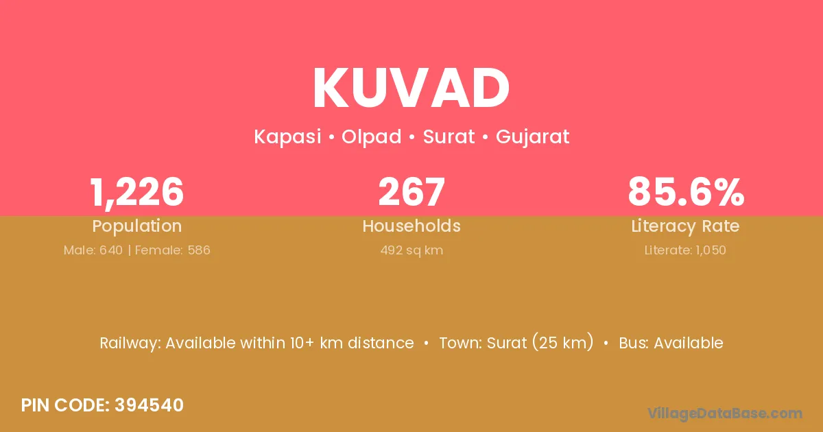 According to Census 2011 information, the village code of Kuvad village is 394540.