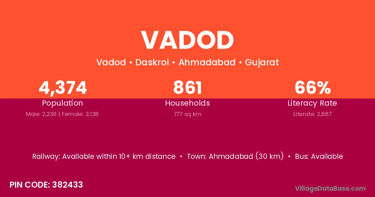 Surat (14 km) is the nearest town to Vadod village for major economic activities and is located approximately 14 km away.