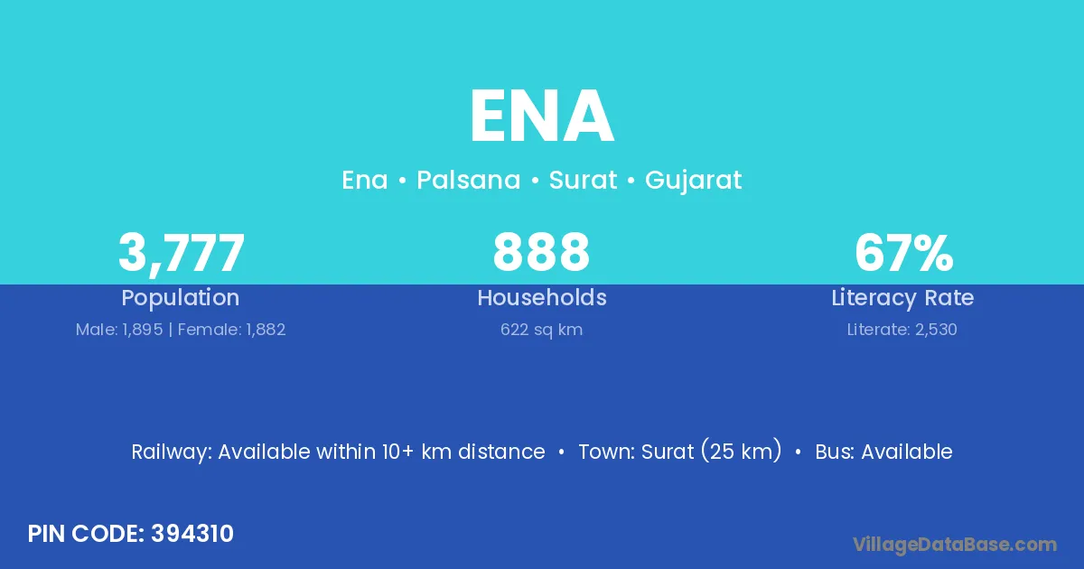 Surat (25 km) is the nearest town to Ena village for major economic activities and is located approximately 25 km away.