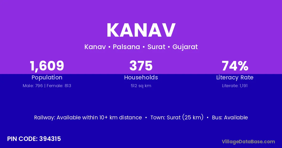 Surat (25 km) is the nearest town to Kanav village for major economic activities and is located approximately 25 km away.