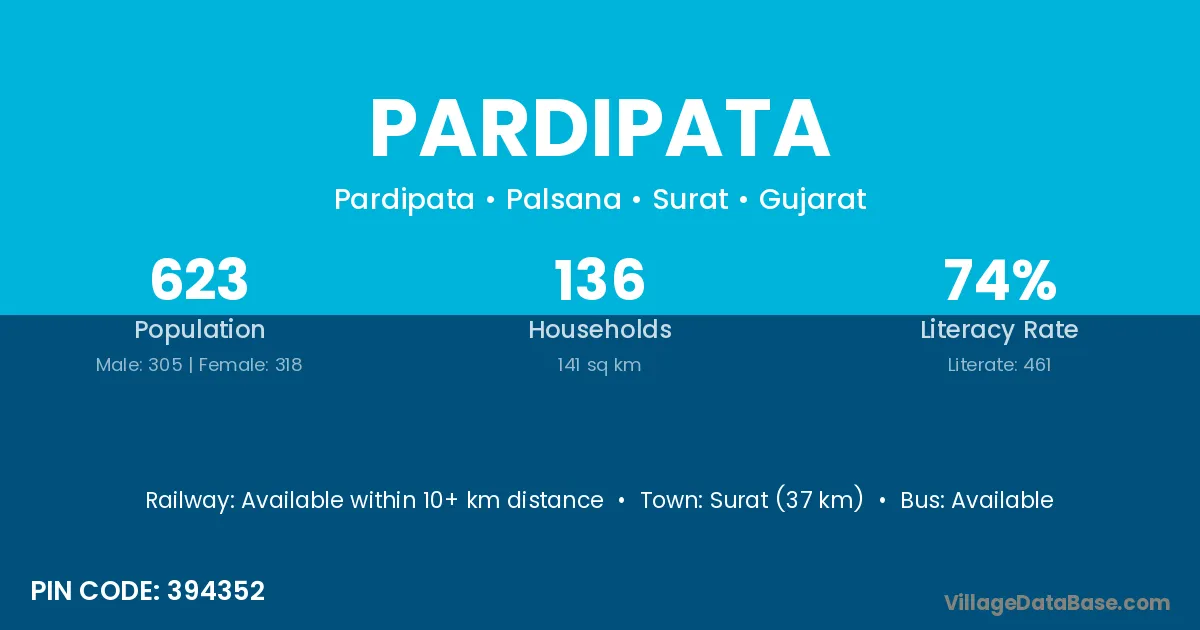 Surat (37 km) is the nearest town to Pardipata village for major economic activities and is located approximately 37 km away.