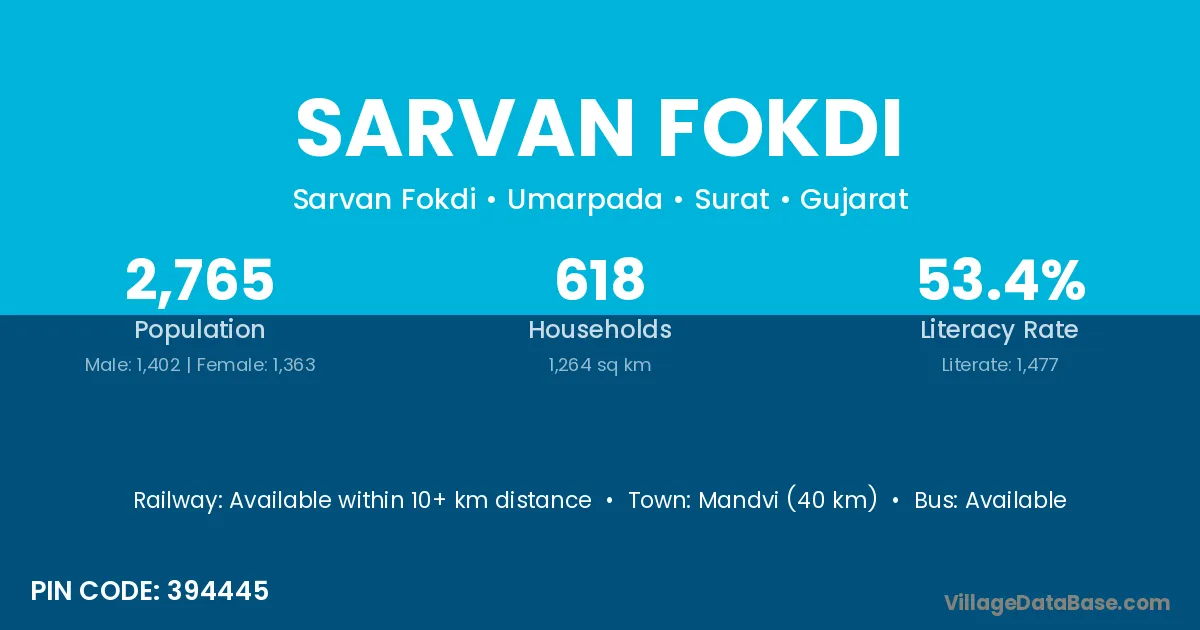 According to Census 2011 information, the village code of Sarvan Fokdi village is 394445.