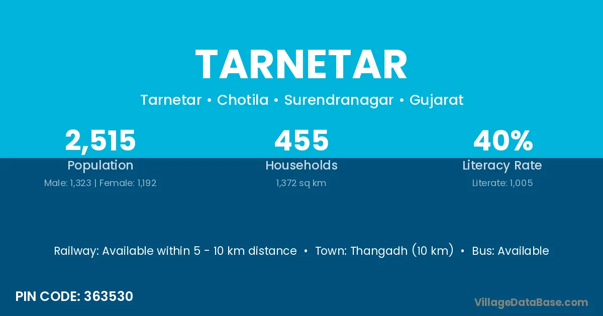 According to Census 2011 information, the village code of Tarnetar village is 363530.