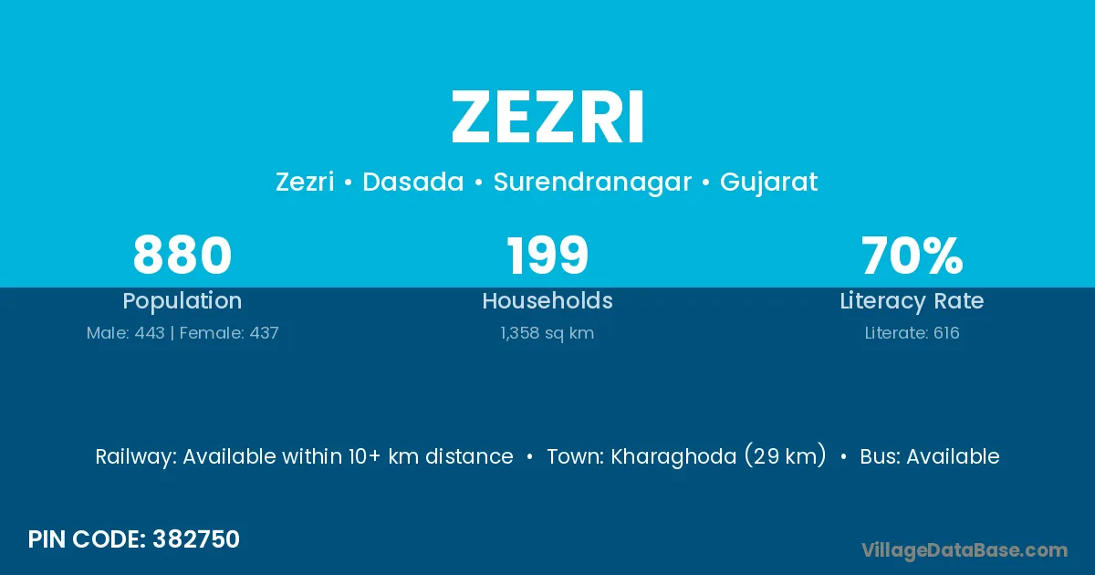 Kharaghoda (29 km) is the nearest town to Zezri village for major economic activities and is located approximately 29 km away.