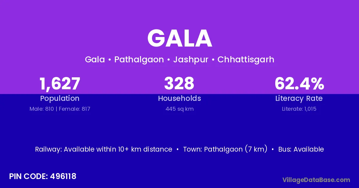 According to Census 2011 information, the village code of Gala village is 363310.
