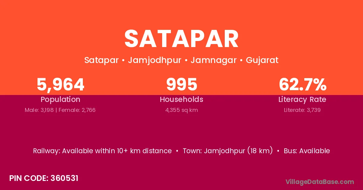 Dhrangadhra (10 km) is the nearest town to Satapar village for major economic activities and is located approximately 10 km away.