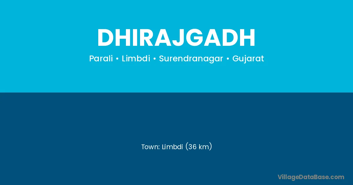 Limbdi (36 km) is the nearest town to Dhirajgadh village for major economic activities and is located approximately 36 km away.