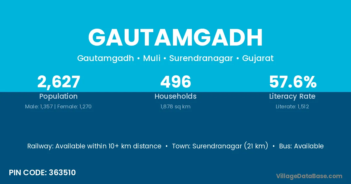 Surendranagar (21 km) is the nearest town to Gautamgadh village for major economic activities and is located approximately 21 km away.