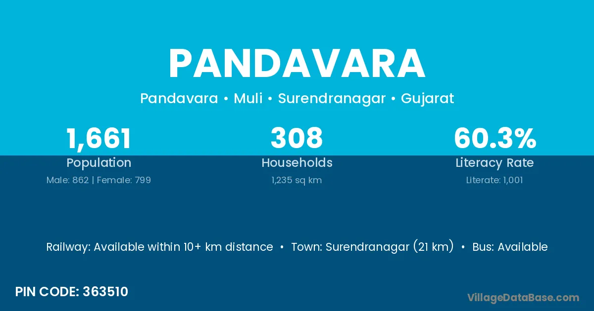 Surendranagar (21 km) is the nearest town to Pandavara village for major economic activities and is located approximately 21 km away.