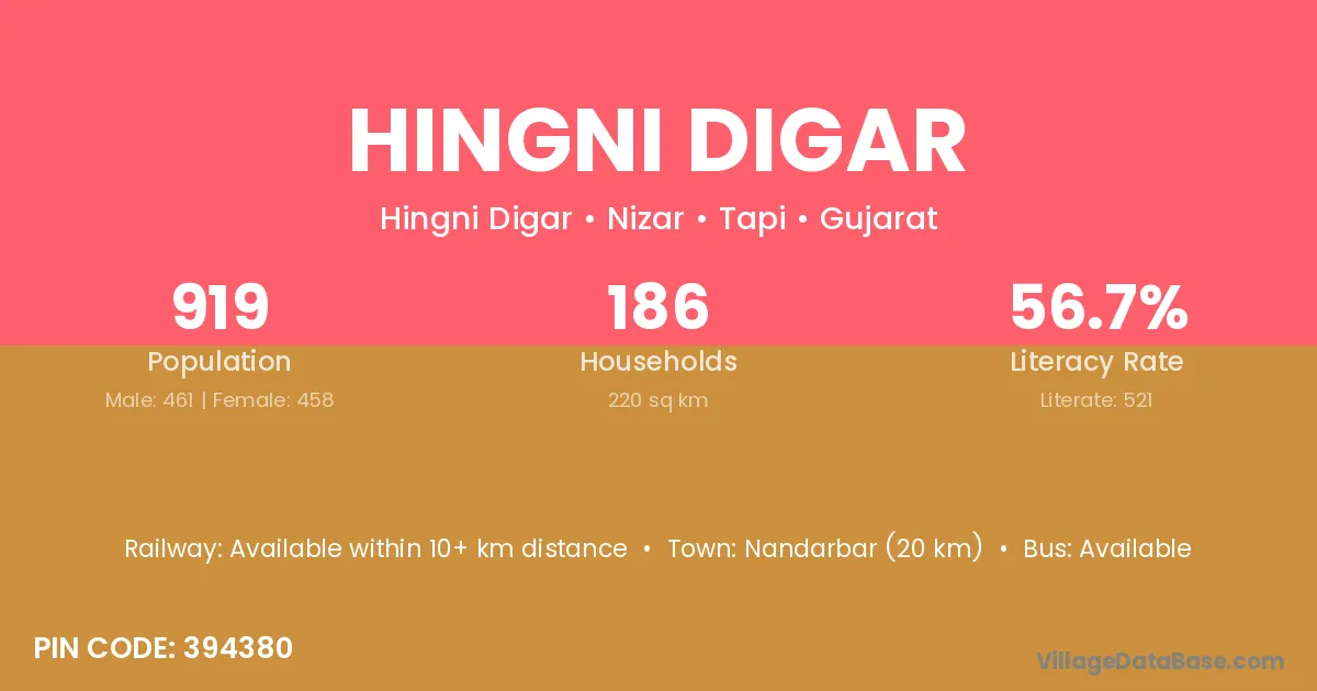 Nandarbar (20 km) is the nearest town to Hingni Digar village for major economic activities and is located approximately 20 km away.
