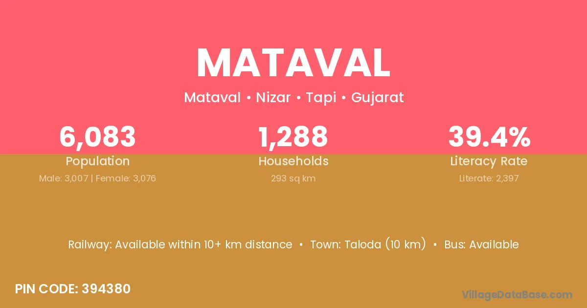 Taloda (10 km) is the nearest town to Mataval village for major economic activities and is located approximately 10 km away.