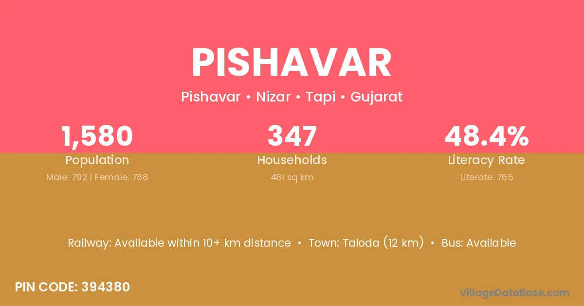 Taloda (12 km) is the nearest town to Pishavar village for major economic activities and is located approximately 12 km away.
