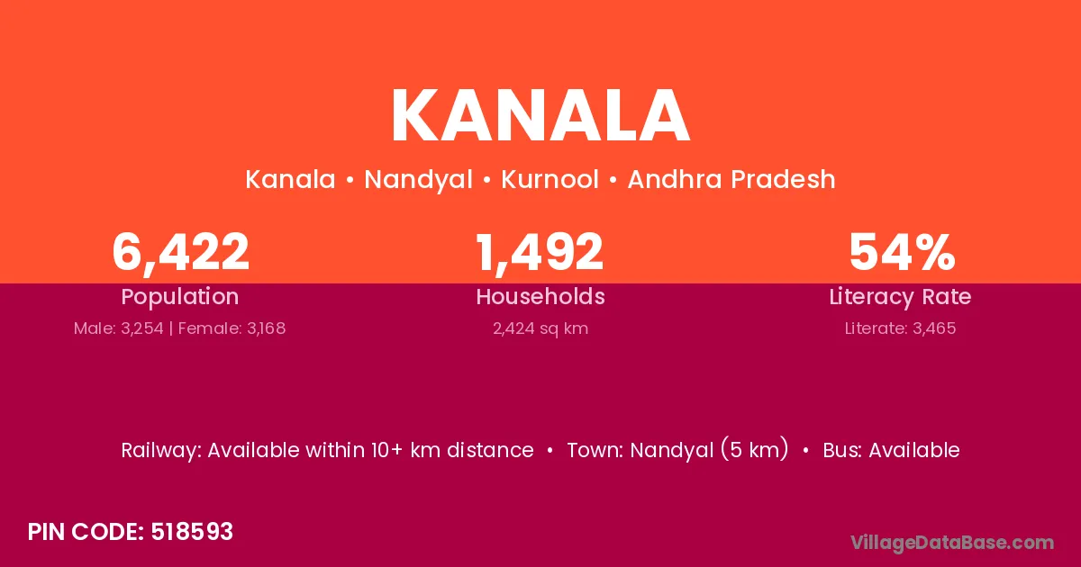 The literacy rate of Kanala village is 59.82%. Male literacy stands at 67.81% and female literacy at 52.30%.