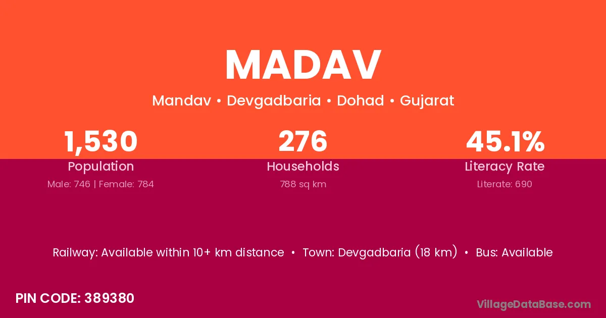According to Census 2011 information, the village code of Madav village is 394655.