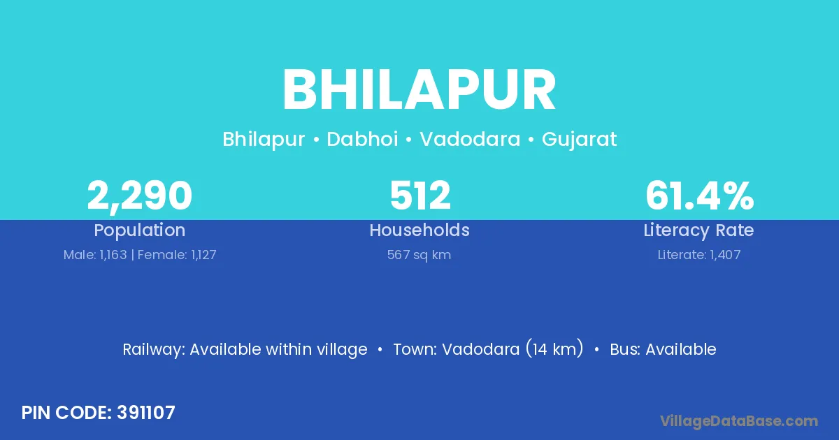 Vadodara (14 km) is the nearest town to Bhilapur village for major economic activities and is located approximately 14 km away.