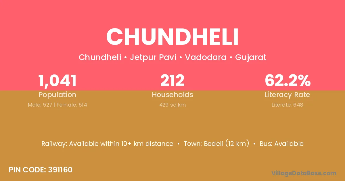 According to Census 2011 information, the village code of Chundheli village is 391160.