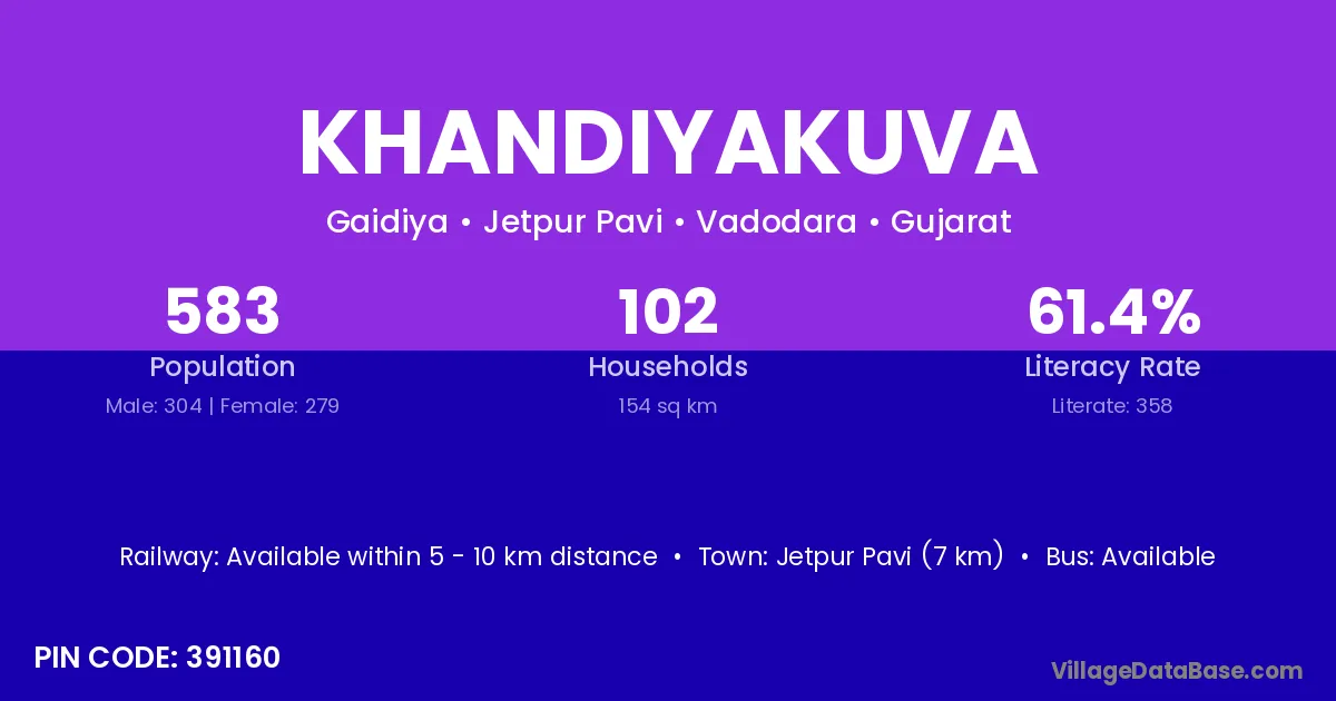 Jetpur Pavi (7 km) is the nearest town to Khandiyakuva village for major economic activities and is located approximately 7 km away.