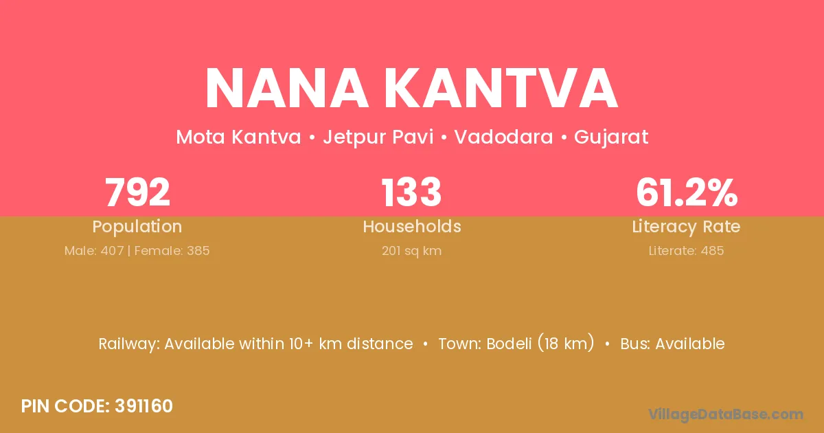 Nana Kantva village has a total population of 792 people, of which 407 are males and 385 are females.