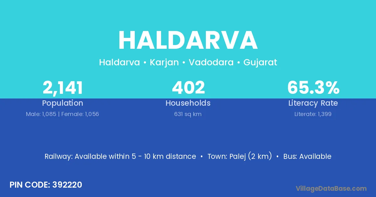 Palej (2 km) is the nearest town to Haldarva village for major economic activities and is located approximately 2 km away.