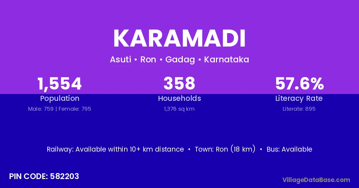 Karamadi village has a total population of 1,763 people, of which 920 are males and 843 are females.