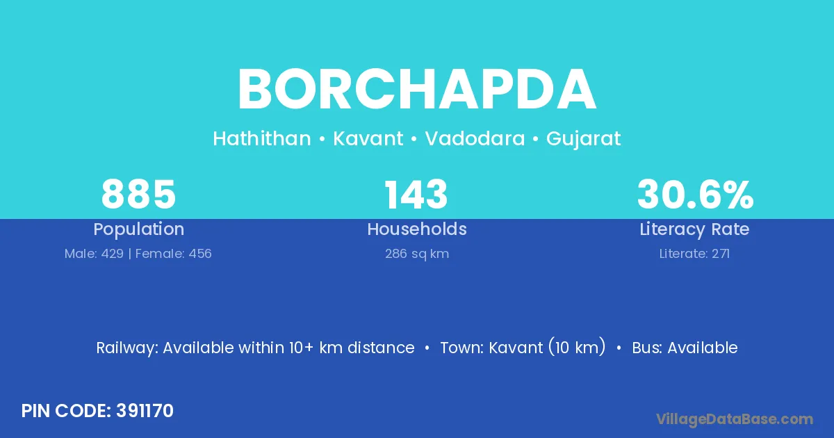 According to Census 2011 information, the village code of Borchapda village is 391170.