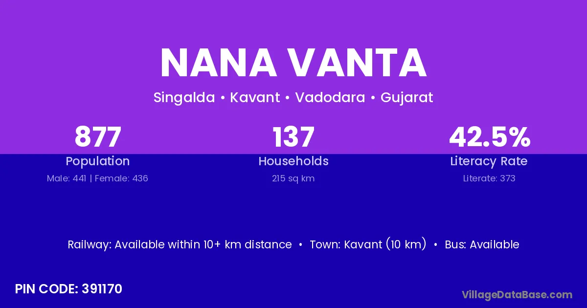 Nana Vanta village has a total population of 877 people, of which 441 are males and 436 are females.