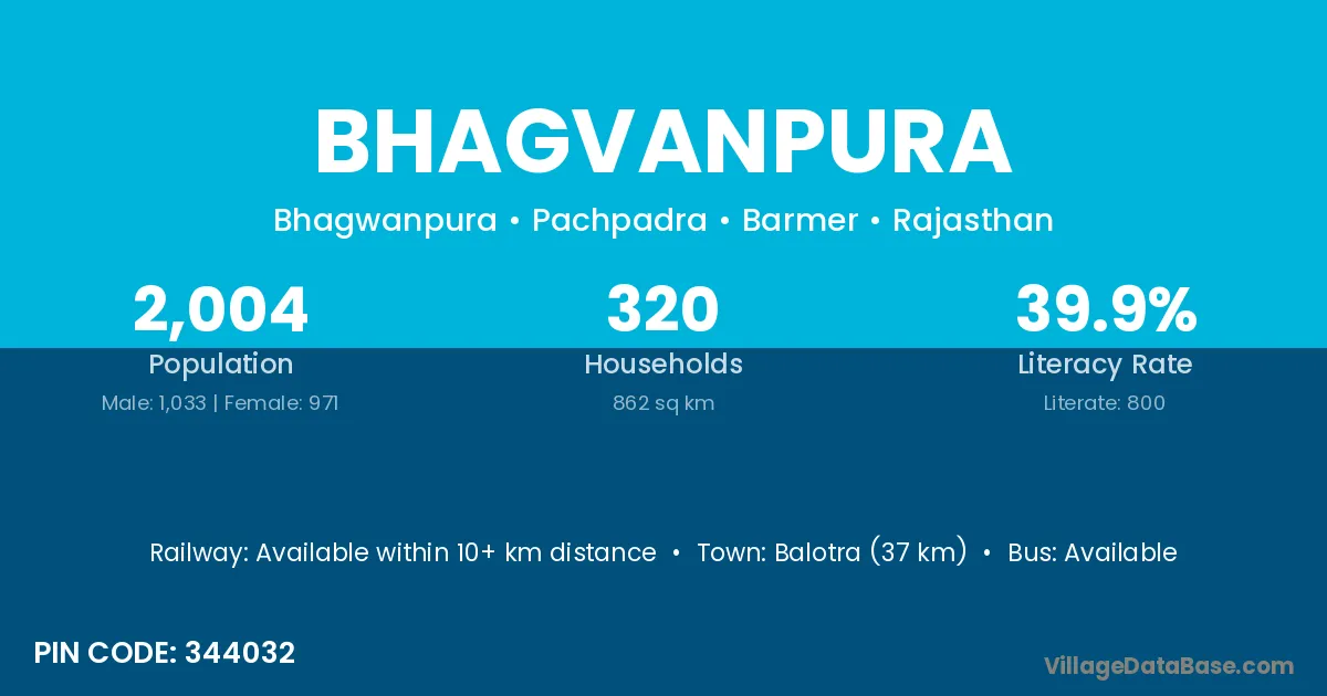 Nasvadi (5 km) is the nearest town to Bhagvanpura village for major economic activities and is located approximately 5 km away.