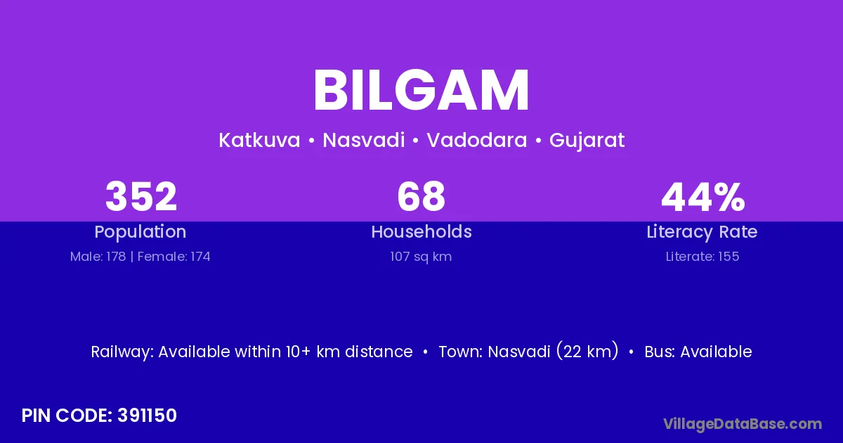 According to Census 2011 information, the village code of Bilgam village is 391150.