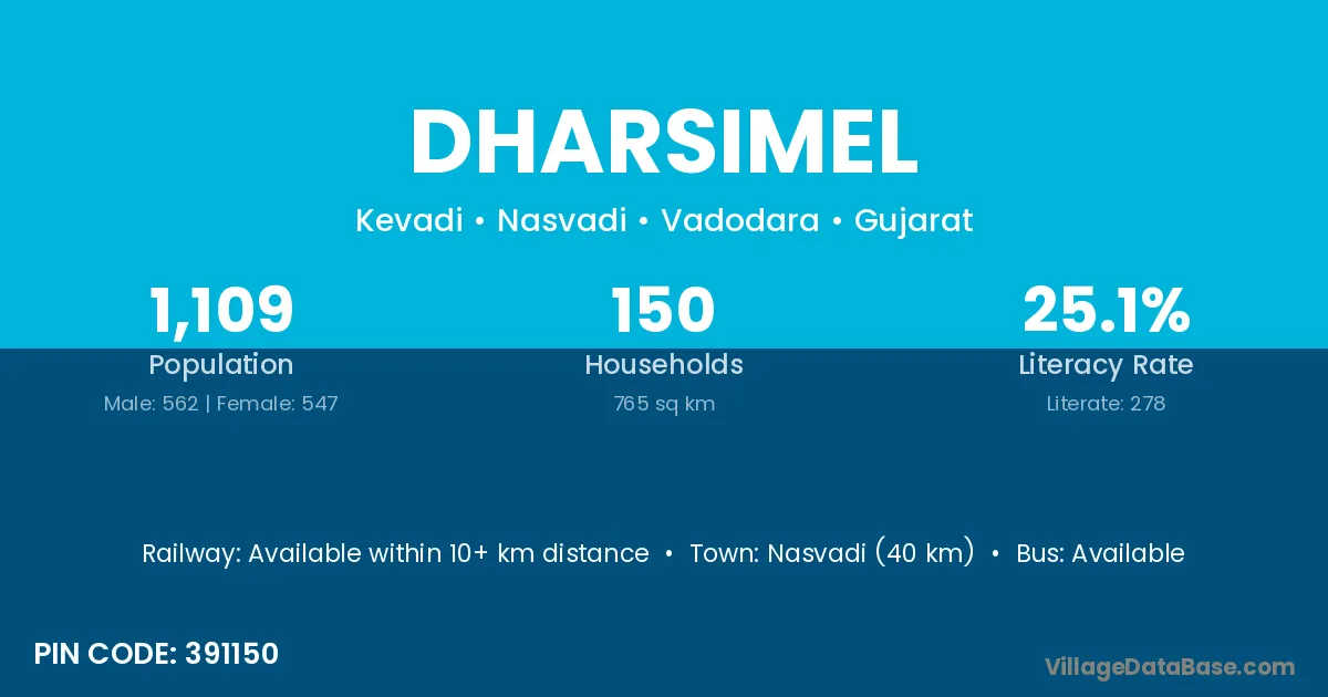 Nasvadi (40 km) is the nearest town to Dharsimel village for major economic activities and is located approximately 40 km away.