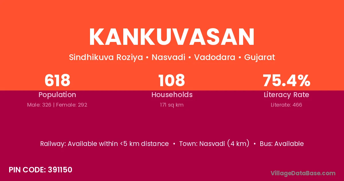 Kankuvasan village has a total population of 618 people, of which 326 are males and 292 are females.