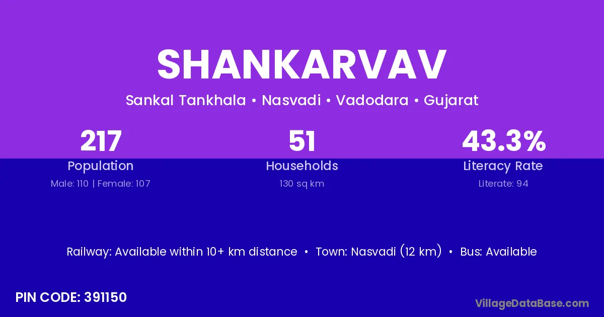 According to Census 2011 information, the village code of Shankarvav village is 391150.