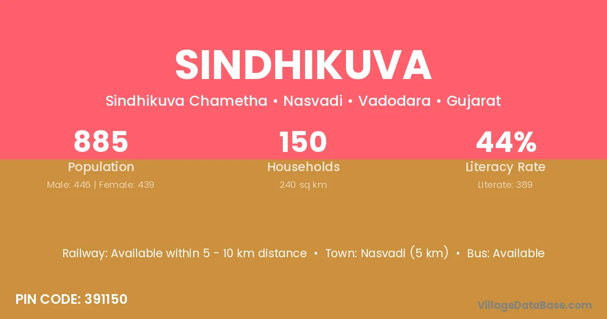 Sindhikuva village has a total population of 885 people, of which 446 are males and 439 are females.