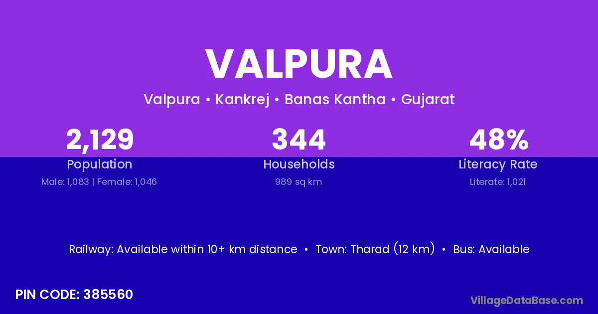 According to Census 2011 information, the village code of Valpura village is 391150.
