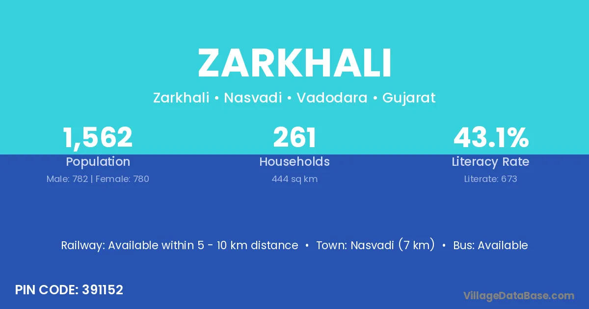 According to Census 2011 information, the village code of Zarkhali village is 391152.
