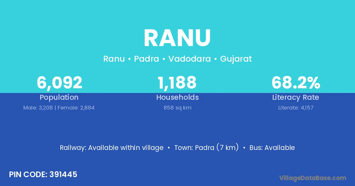 Padra (7 km) is the nearest town to Ranu village for major economic activities and is located approximately 7 km away.