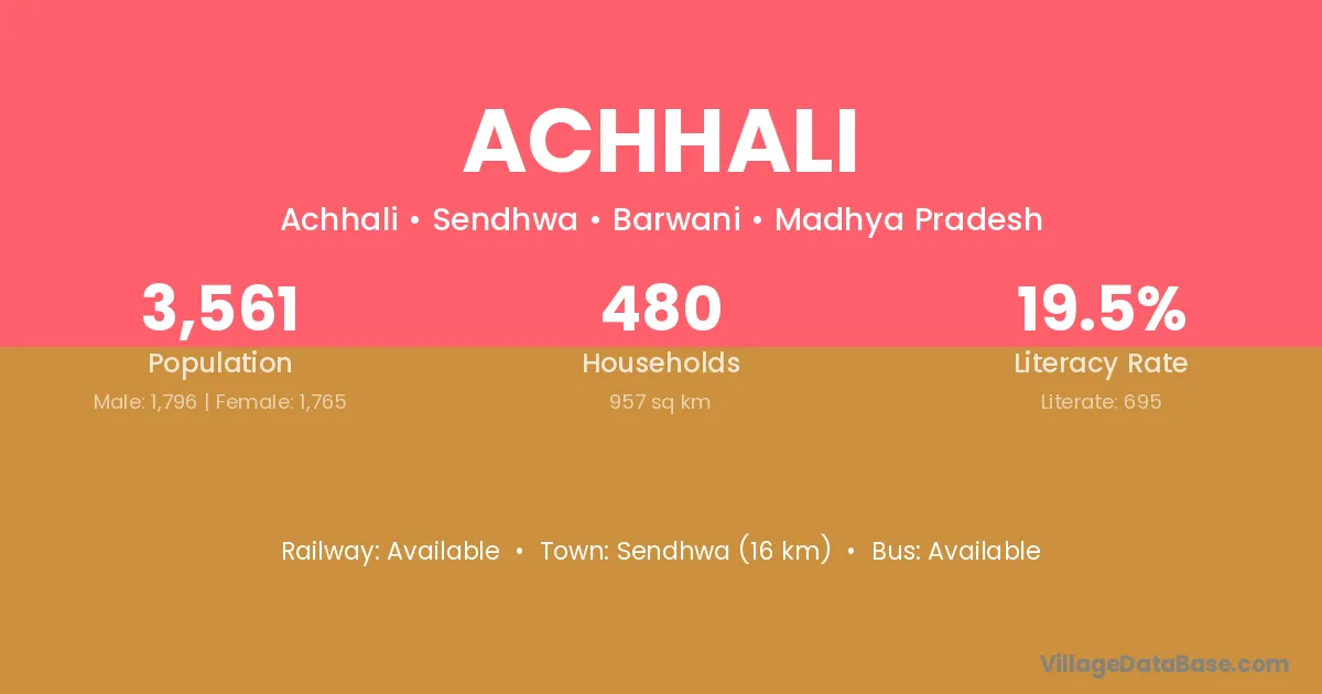 Bodeli (14 km) is the nearest town to Achhali village for major economic activities and is located approximately 14 km away.